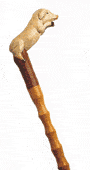 canne en bois précieux, bichromie, pommeau sculpté et peint